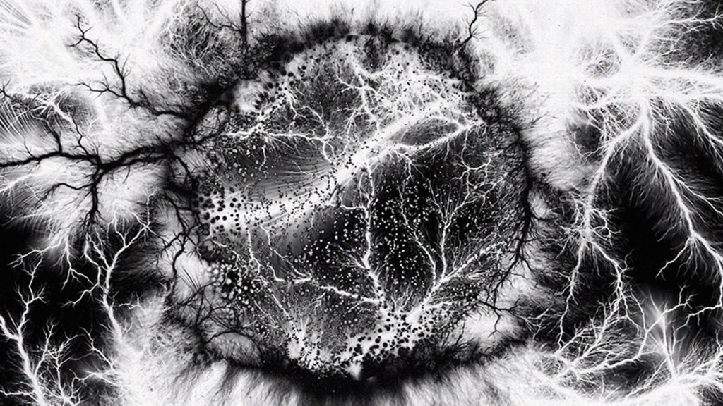 CE: Your film Energie! (2007), ironically, also looks computer generated. The film is, in essence, contact printed energy! I personally like how the sparks resemble trees. In the titles you made for Enter the Void , you expanded on this technique by conducting electricity through metal letters. Do you plan on going any further with it?