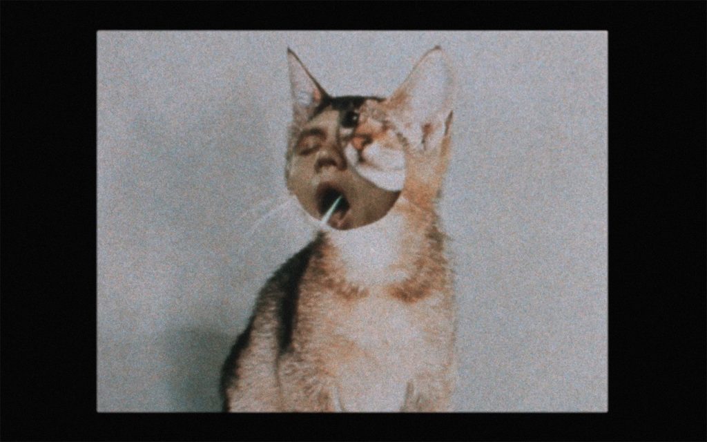 His most ambitious work to date, The Public Slaw (2015), co-directed with Andrew Zukerman, is a handcrafted, psychedelic vision that blends found footage experimental filmmaking techniques, Internet memes and public access television. The film is hosted by a public access Dracula (played by Kevin Leggat) who introduces the viewer to an onslaught of images including pugs, no-budget horror films, collages, and a news bulletin consisting of a falling cat landing on its feet, among other things, all of which are held together by a visual commentary in the form of direct animation. The final section of the film is a dance performance by Minae Omi that, together with chaotic camerawork and editing, creates a visceral experience that is bound to appeal to the audience’s innermost nihilistic impulses.