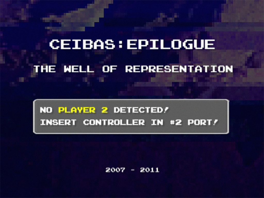Clint Enns: In order to work through some of the ideas presented in the Ceibas Cycle, let’s discuss them individually, in relation to the other works in the cycle, and naturally end on the epilogue, The Well of Representation, a video that seems to combine all of these ideas into one glitch-tastic machinima masterpiece. The connection between glitch and communication is a theme that is explored in How Mayan Lovers Might Find The Next Life, Shannon’s Entropy (2008), We Things At Play (2010), and The Unseeable Exchange of Our Parts (2008). In We Things At Play you use subtitles and repetition to demonstrate how people have grown tolerant of linguistic noise in our day-to-day conversations – the uh(s), like(s), so(s), ummm(s). Originally, these linguistic errors are removed from the subtitles, however, they are re-introduced once the video glitches out. Although people accept linguistic noise, we are still very intolerant of visual noise, and usually see it as disrupting our visual communication. Why are we bothered by visual noise, but often do not even notice linguistic noise? Do you feel this is something we will grow more tolerant of as time goes on and with increased exposure to visual digital communication? For instance, as younger generations grow up with YouTube and NetFlix, will streaming noise become less noticeable, like linguistic noise?