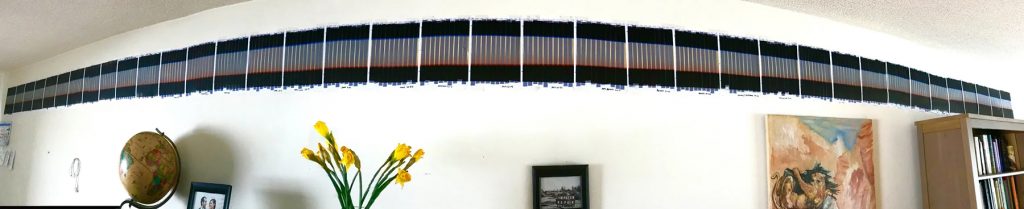 I called the Artists Rights Society (ARS) and submitted several requests for copyright. I finally reached someone who said that for $250 I could acquire the rights to use the image. We had a brief back and forth about how I wished to use the image: as a looping installation or as a single-channel work for underground screenings. In order to show them my proof of concept, I printed the image onto a filmstrip and showed them a picture of it. Their last response was in 2017. Of course, the image is readily available on the Internet, but I wanted to see how to do it the “legal” way. I recorded these conversations with ARS and they are more interesting than the images produced. Although, a sheet of film with the watermarked image is pretty funny. Literally, a disastrous reproduction.