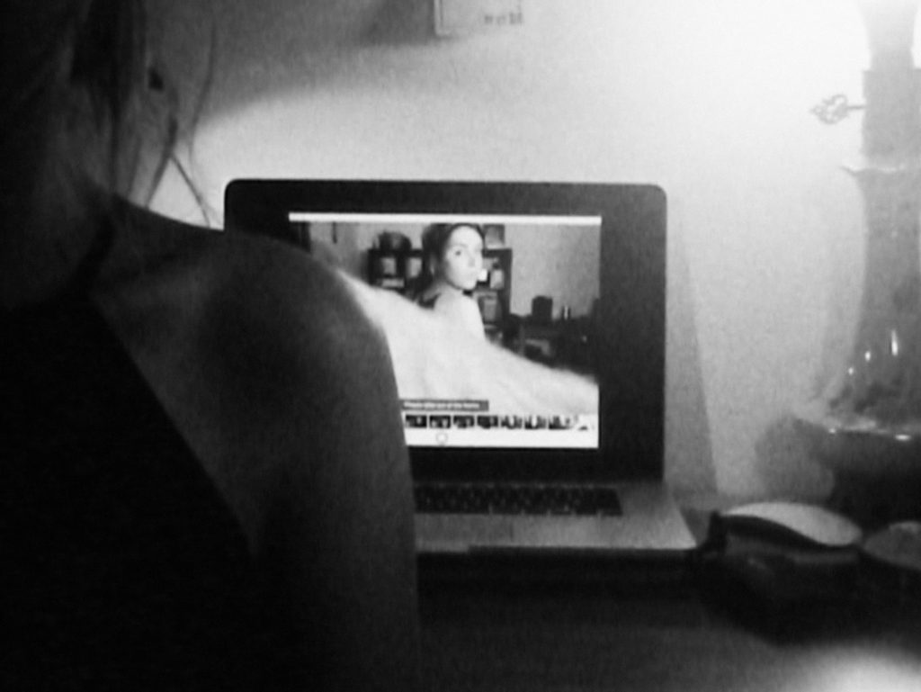 KH: Please step out of the frame started with a very strict and precise storyboard which quickly unraveled as I began filming the first of the eight Super 8 cartridges. The first roll was supposed to act as the backbone of the piece, simple shots of my desk – slow zooms of an Eadweard Muybridge image on my computer desktop. I got a bit carried away, and began stepping in and out of the frame. I knew it would throw the whole piece off, but I couldn’t resist. Each roll of film took a week to process at the lab. While the film was being processed, I would use this time to edit the previous roll digitally and to shoot a new roll of film where I interacted with those freshly edited images playing on my computer screen. In a sense, this was a slow performance lasting eight weeks documented on Super 8. I edited the digital version and then painstakingly recreated these edits on Super 8; however, in the Super 8 version there is a bonus scene where the film appears to burn (which didn’t translate well digitally).