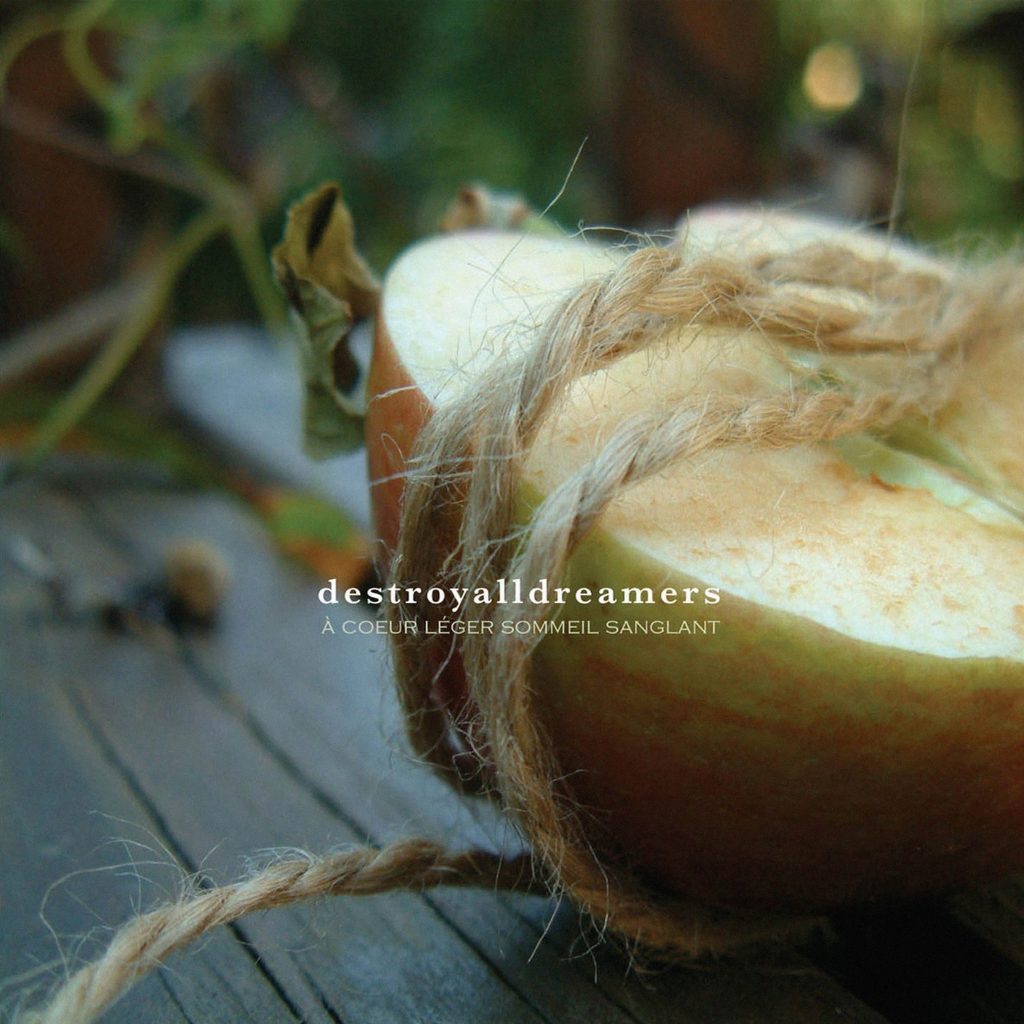Destroyalldreamers approached Patrick Lacharité [from Below The Sea and WAMR’s graphic designer and audio consultant] to help us produce our first album, which was recorded in his home studio/apartment in the Plateau. We collaborated together on the design of the album. Beyond the graphic work, we used an ambiguous image to capture the absurdity of the album’s abstract title “À coeur léger sommeil sanglant,” [“Lighthearted Bloody Sleep”]—a cut apple wrapped in a thick brown string. This cover was a crash course in digital photography and graphic design.