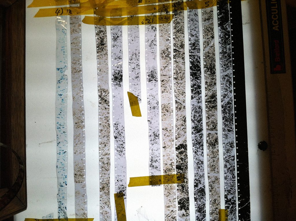 I originally titled the film Her Silent Seeming since my voice is removed from the film. I don’t respond to the men in the text, so the film itself is supposed to function as my voice. There are over 710 splices in the film, and the text is scratched on the emulsion frame-by-frame. All 26 frame fragments were cut piece-by-piece and put up on my studio wall. They looked chaotic on the wall, but became linear when they were placed into the film. I felt like a seamstress that was making a garment (a notion further explored in Solitary Acts #5 [2015]) so I decided to change “Seeming” to “Seaming” in order to describe the labor involved.