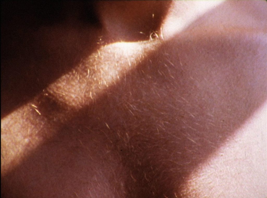 ND: 26 frames is the standard frame difference between the image and sound on a 16mm projector. Traditionally labs sync the sound 26 frames ahead of the image with an optical soundtrack for synchronization. Her Silent Seaming is composed of 26 frames entirely, so what you are hearing is the previous image. There is a fake “sync” throughout the whole film, which is also a failure. My sexual relationships are failing, so is my communication, and you can’t quite catch up. There is also technically no sound in the film. What produces the sound are the images themselves that are scratched as well as the cuts in the film, which also create a rhythmic quality of a metronome. I think of mathematical equations representing sexual relationships, which cannot be mathematical. But just as in Reframe, the apparatus makes these rhythmic choices, and not me.